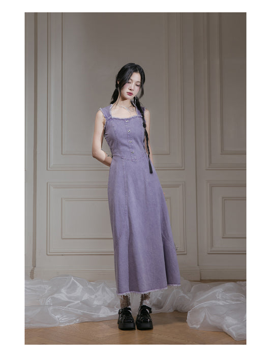 Raw Edge Denim Sleeveless Dress