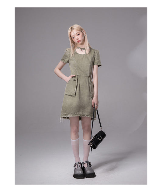 Three-Dimensional Pocket Denim Dress