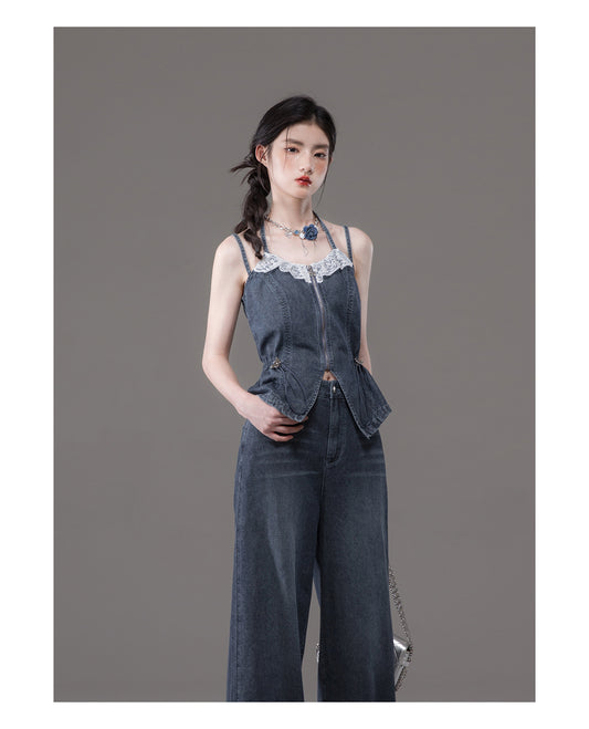 Double strap slimming denim set