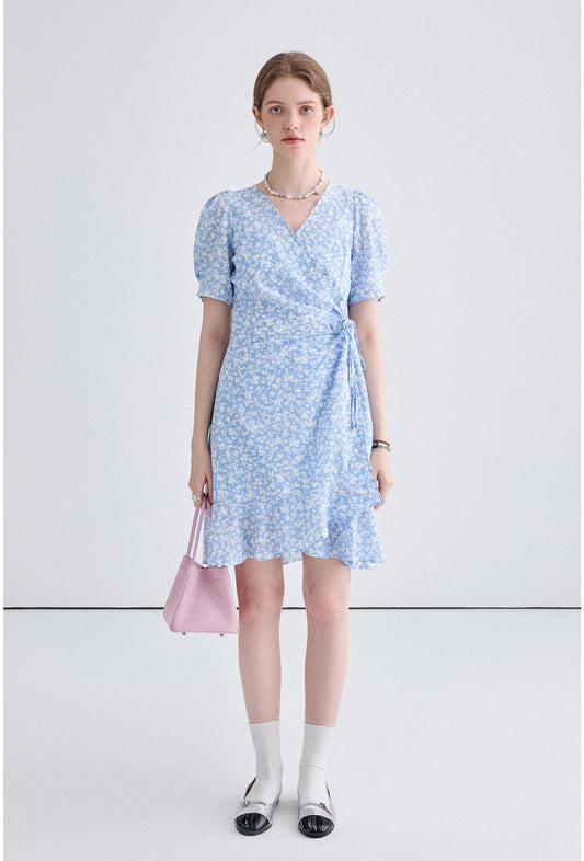 Puff Sleeve Floral Pattern Dress