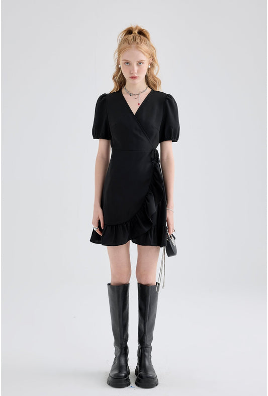 French Retro Puff Sleeve Dress