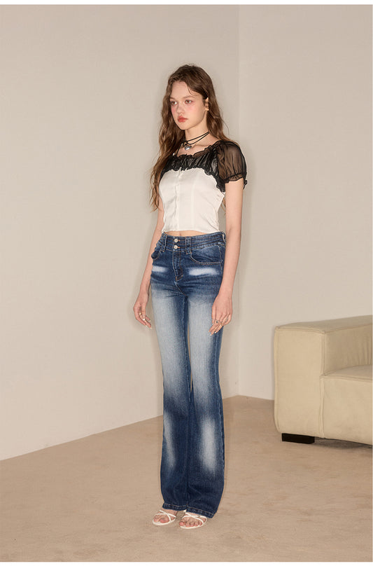 Slimming Bootcut Retro Blue Pocket Wash Pants