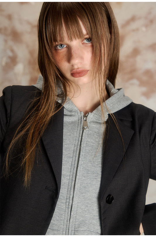 Black and Gray Splice Short Coat Black Skirt Setup