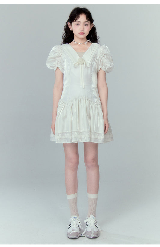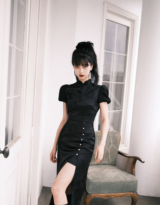 Puff Sleeve Chinese Dress Style Short Length One-piece