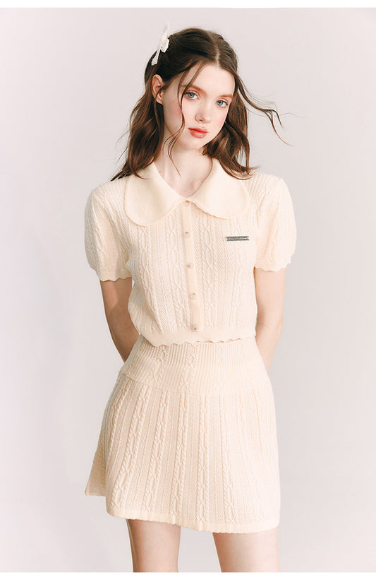 Wool Slim Short Length Knit Cardigan & Short Length Knit Skirt Setup
