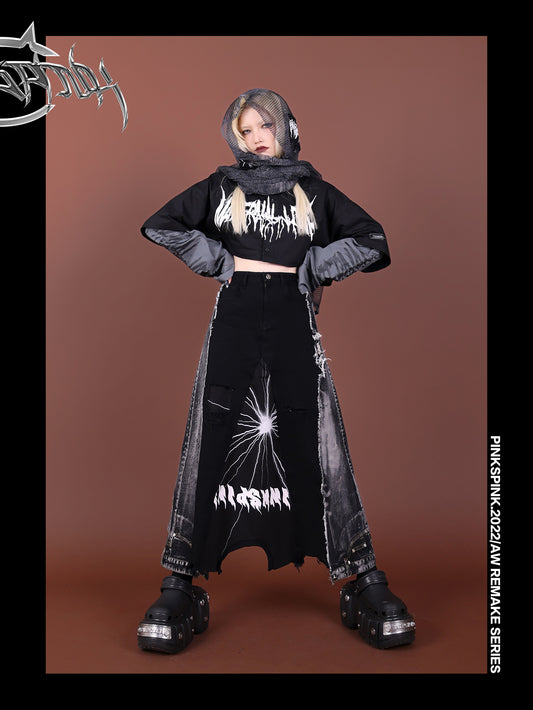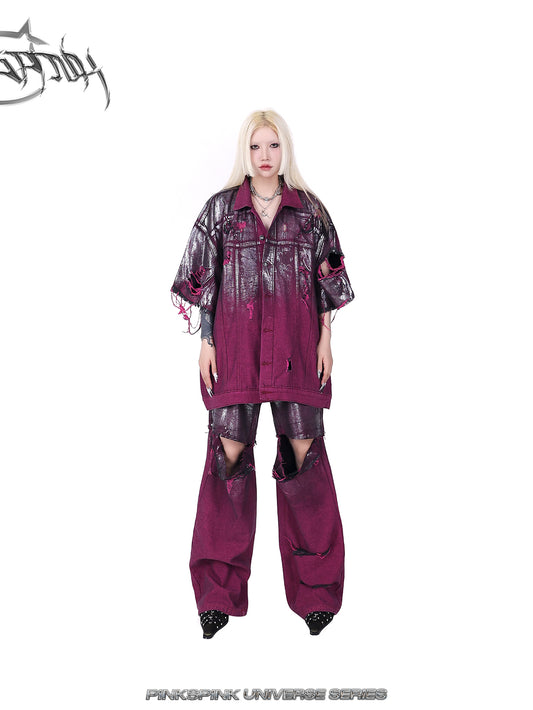 Raglan Sleeve Star Design Damaged Sweatshirt