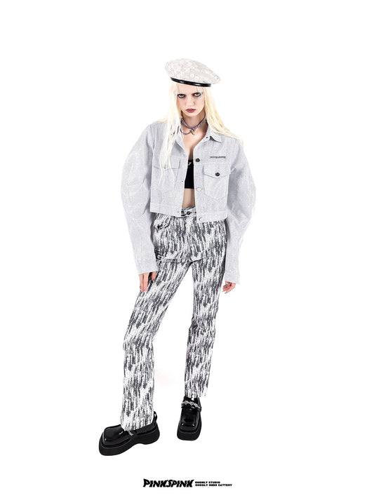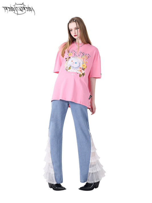 Slim Fit Irregular Hem Ruffle Design Denim Pants