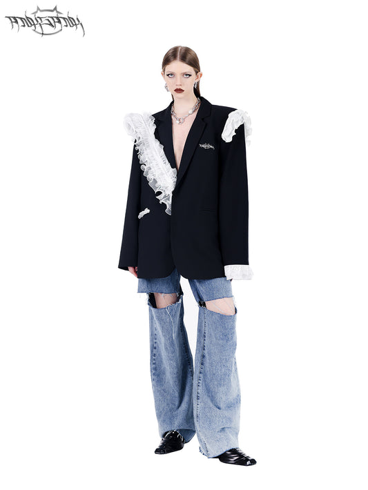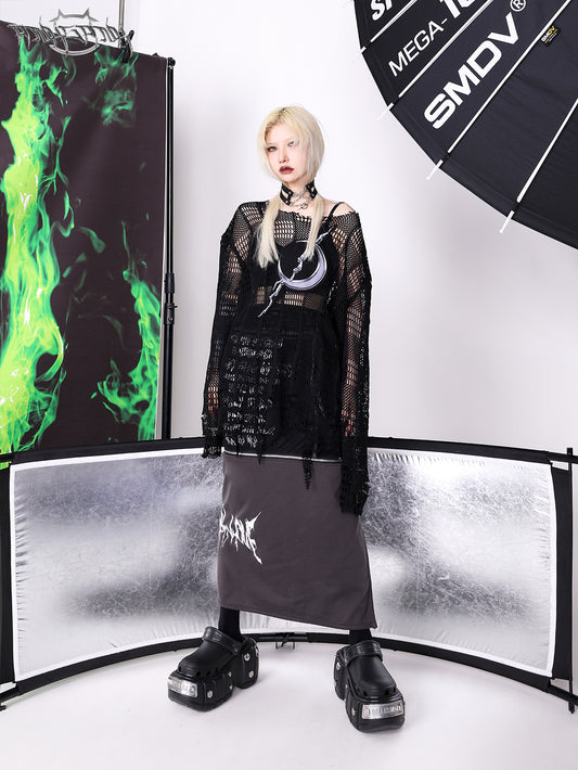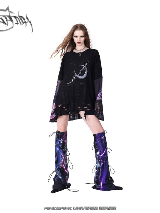 Printed Reconstructed Mesh Long Sleeve T-Shirt