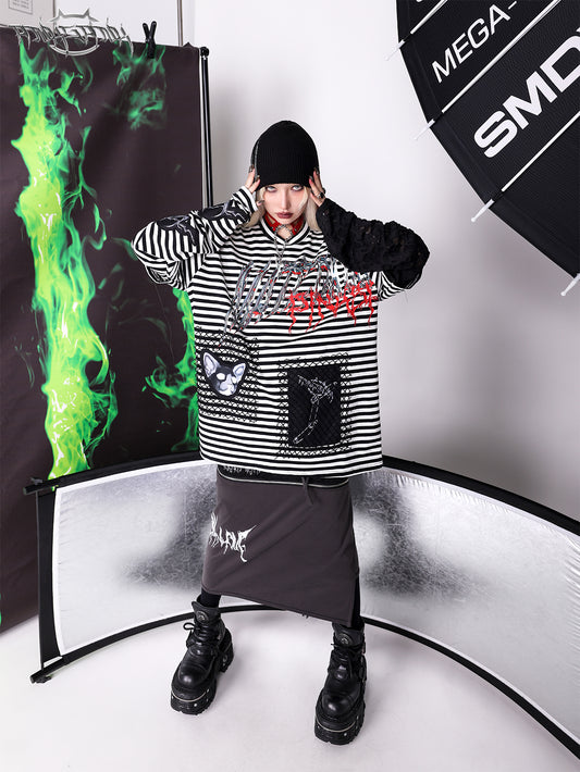 Loose Fit Patchwork Stripe Long Sleeve T-Shirt