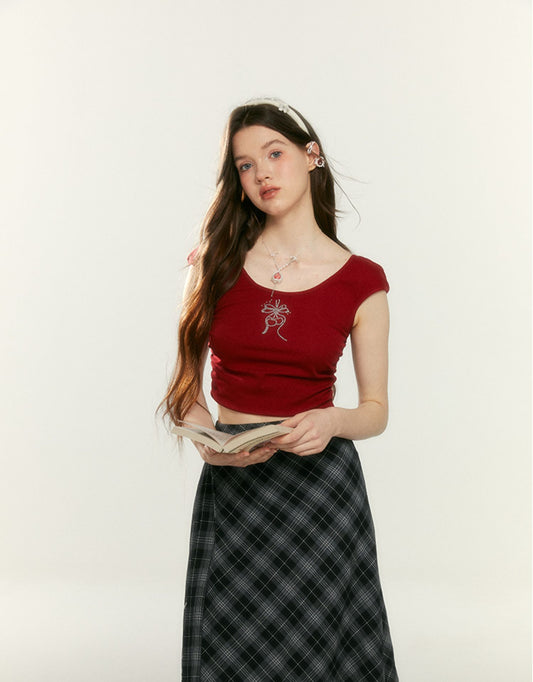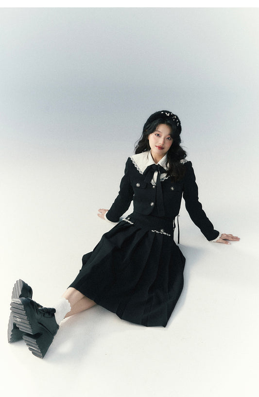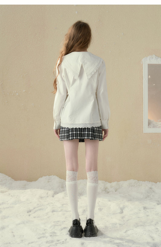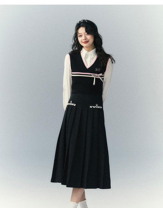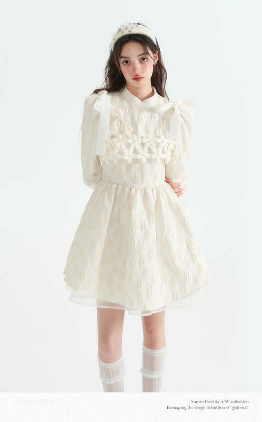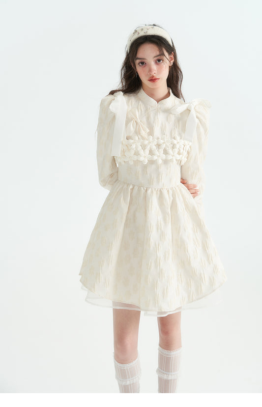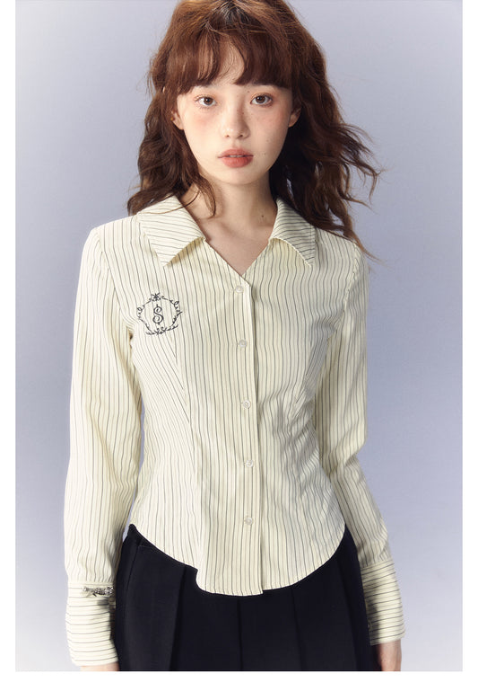 Stripe Embroidered Tie Long Sleeve Slim Shirt