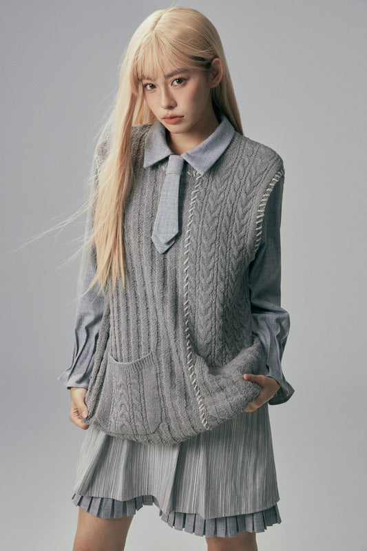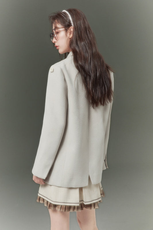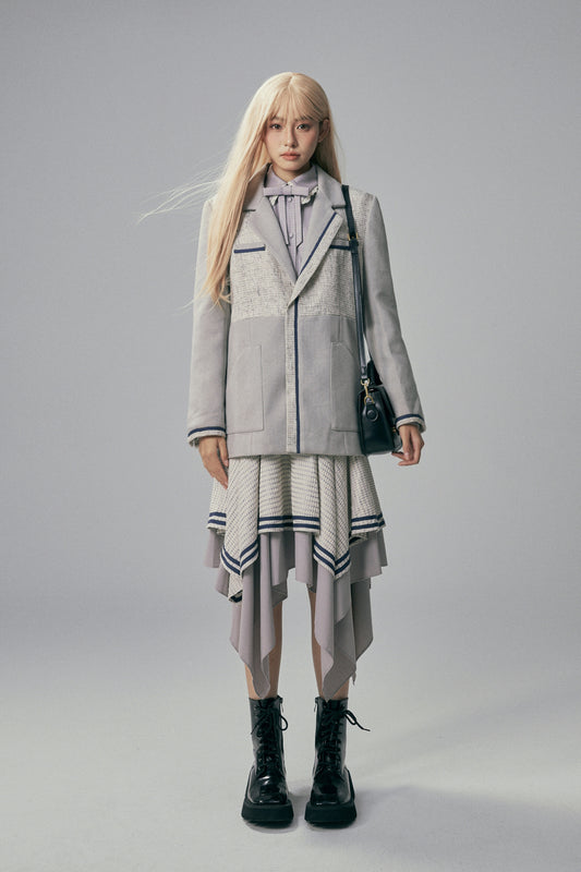College Gray Stitch Knit Crochet Suit Short Jacket