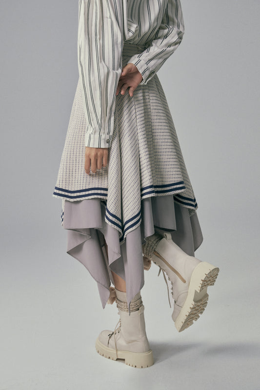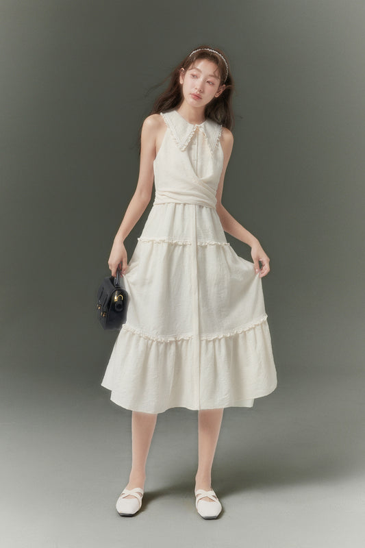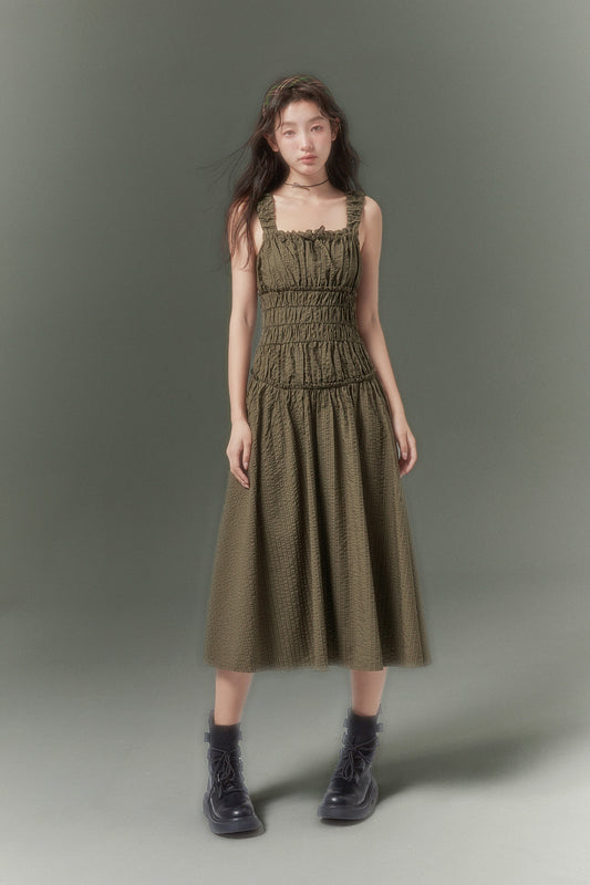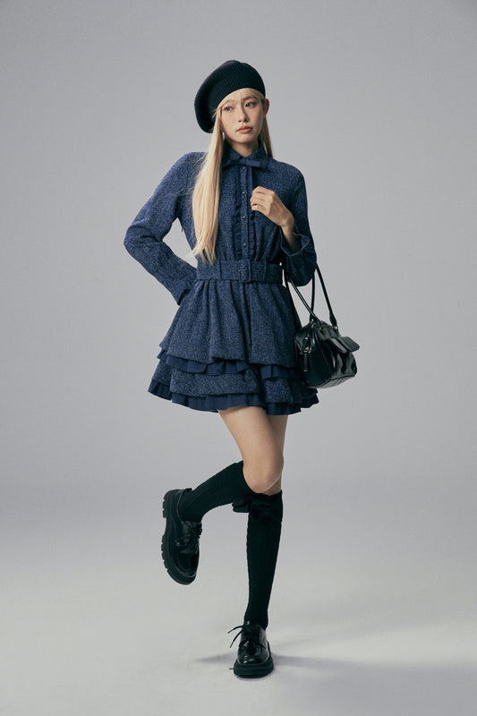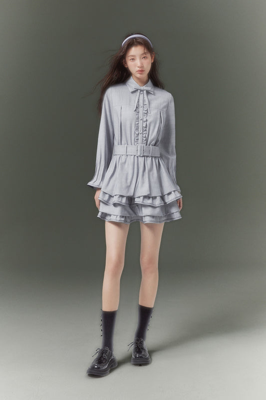 Elegant Plaid Light Taro Blue Ribbon Multilayer Hem Girly Bad Dress