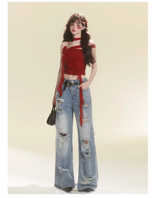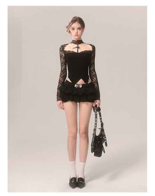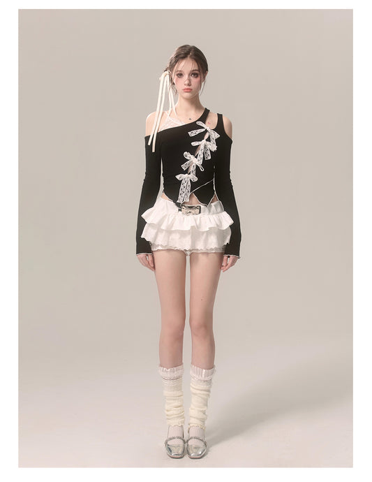 Lace Halter Neck Off-the-shoulder Shirt