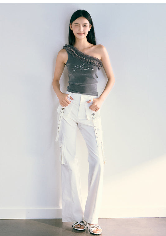 Sleeveless Pleated Suspender Top & Slim Fit Tsuri-Ring Skirt Setup