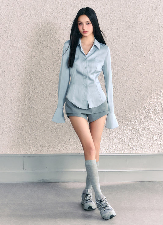 Slim Fit Zip Sweater & Slim Fit Short Length Multi Pocket Skirt Set Up