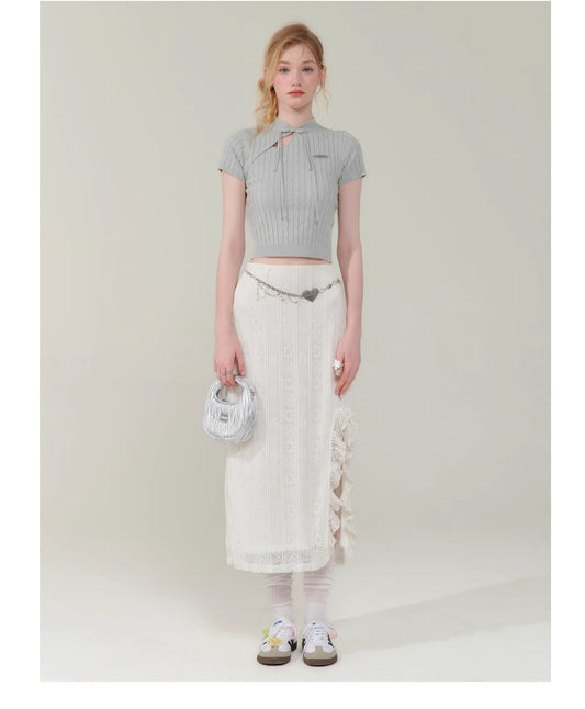 Slim Fit Irregular Hem Ruffle Design Denim Pants