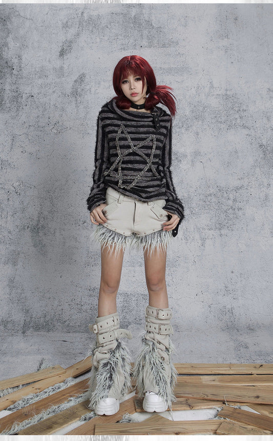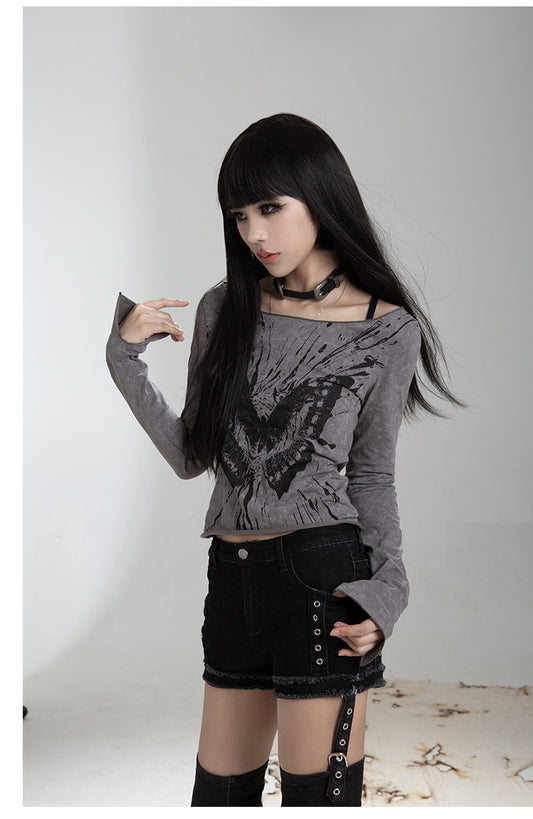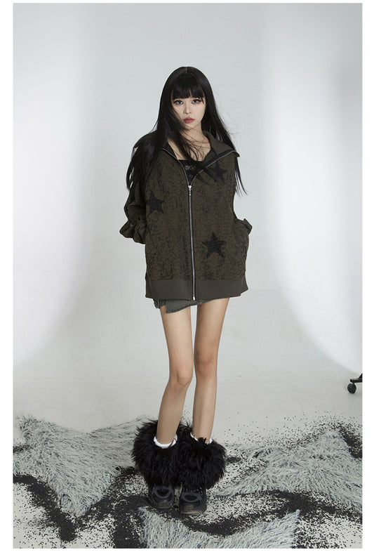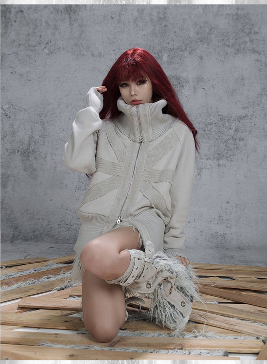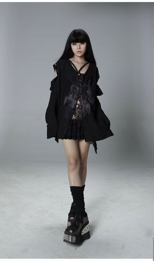 Off-the-shoulder Front Zip V-Neck Hoodie