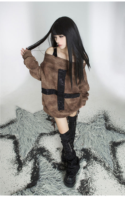 Sold outOff-Shoulder Cross Patch Sweatshirt