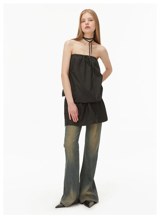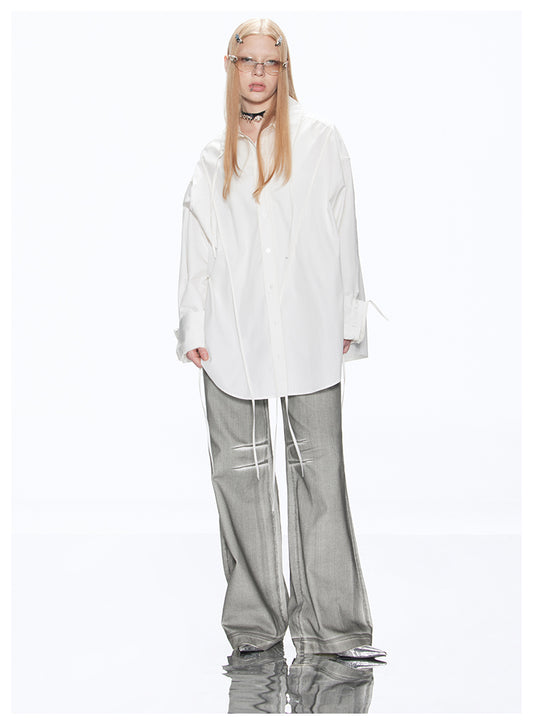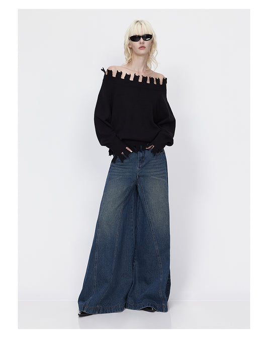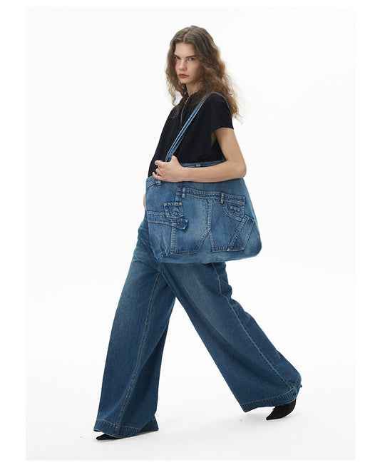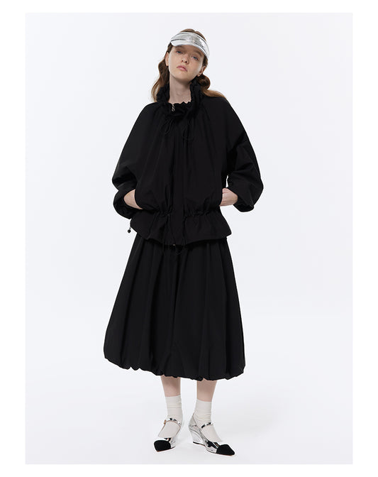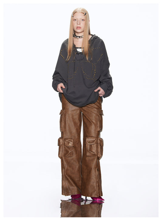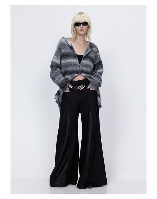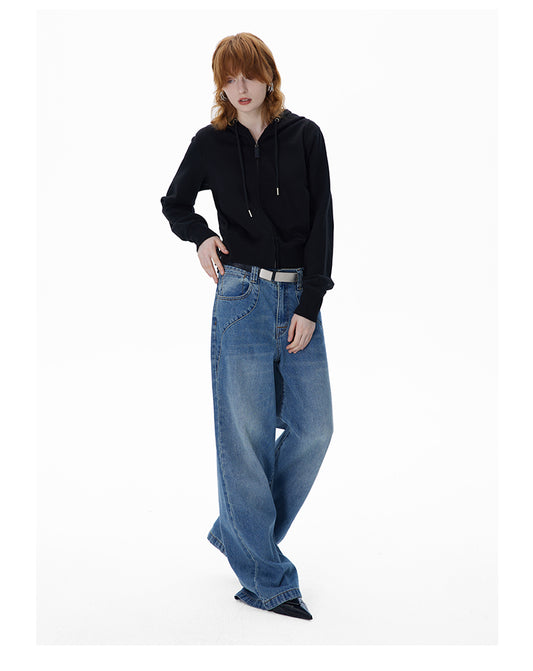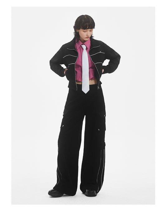 Short length sweat cardigan & loose straight multi-pocket sweatpants