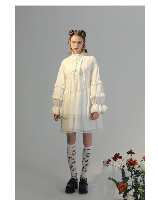 Sold outFrench Girly Puff Sleeve Shirt Dress