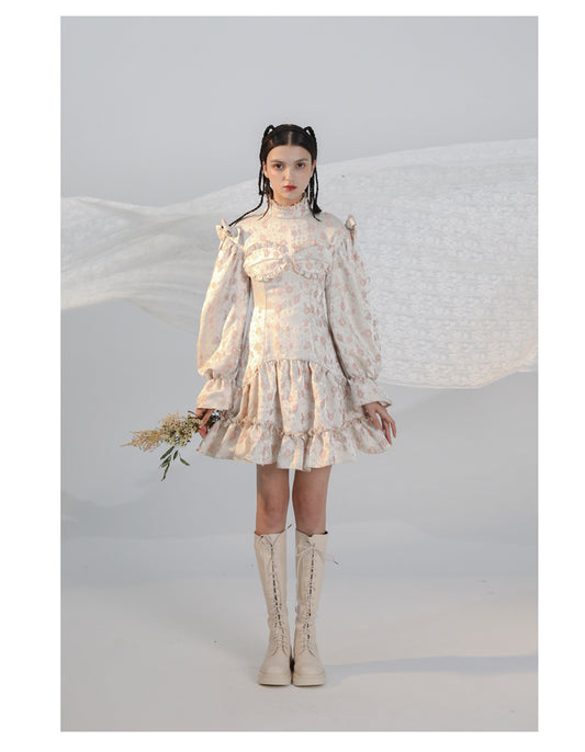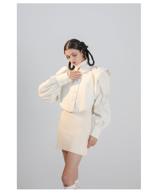 Short Length Puff Sleeve Jacket & High Waist Long Ribbon Skirt Setup