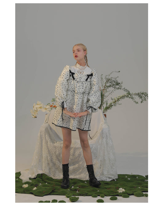 Sold outSquare Neck Puff Sleeve Dot Dress