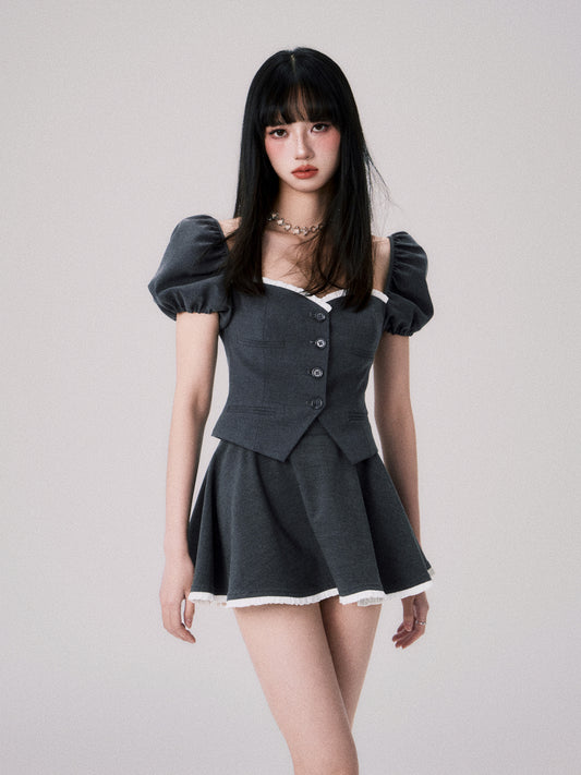 French Style Square Neck Puff Shoulder Setup