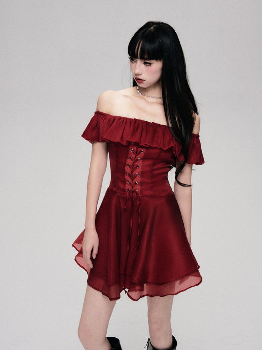 Off-the-shoulder strapless waist one-shoulder dress