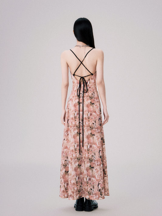 Slim fit floral slit suspender dress