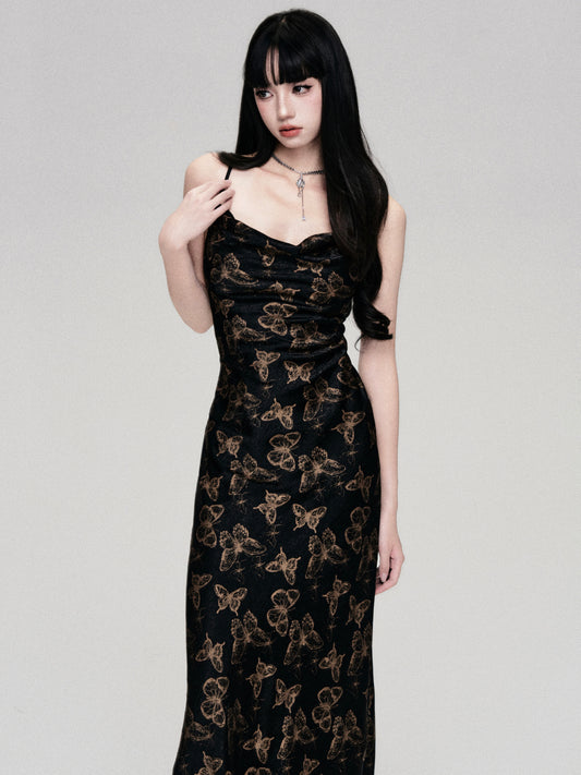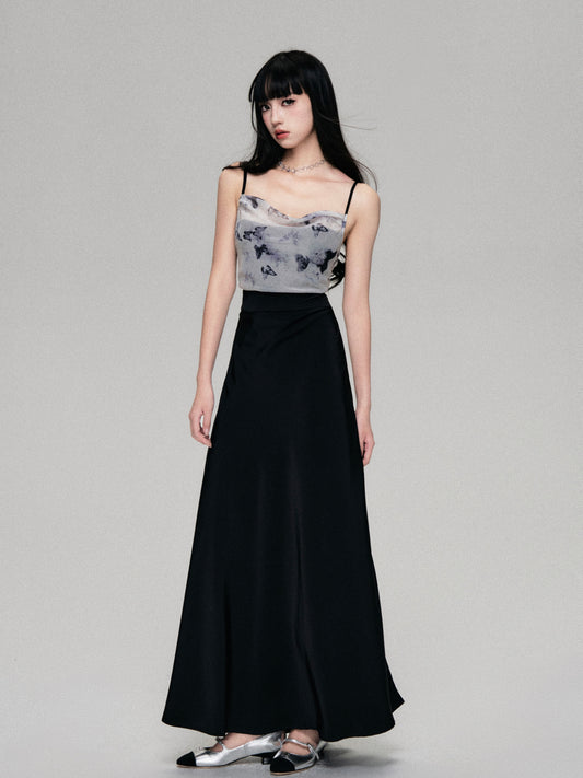 Splicing Stretch Mesh V-Neck Suspender Dress