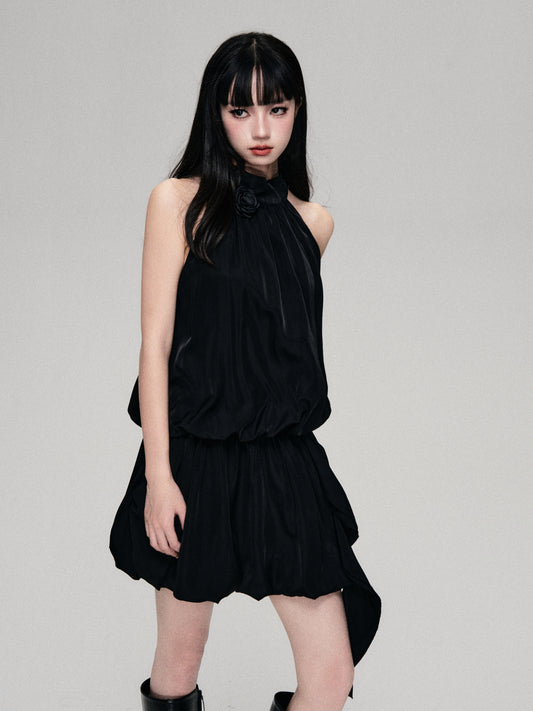 French Retro Swing Color Polka Dot Strap Halter Neck Dress