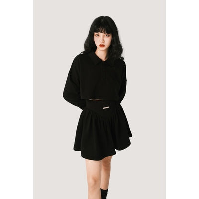 Loose Fit Casual Short Length Sweatshirt & Short Length Sweatshirt Skirt Setup