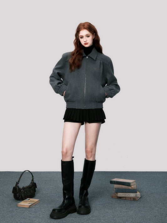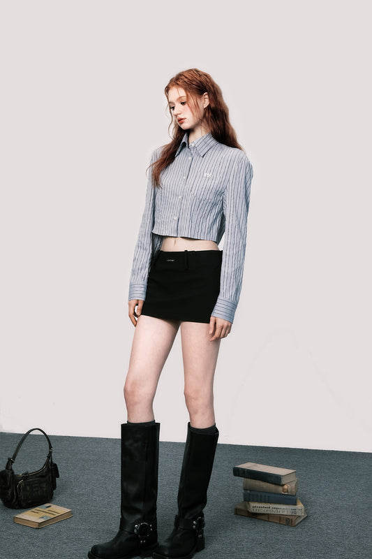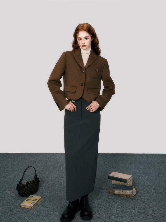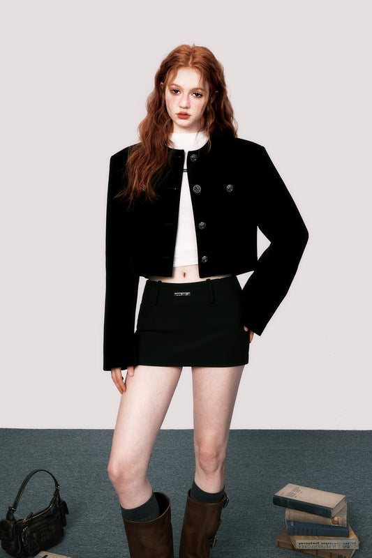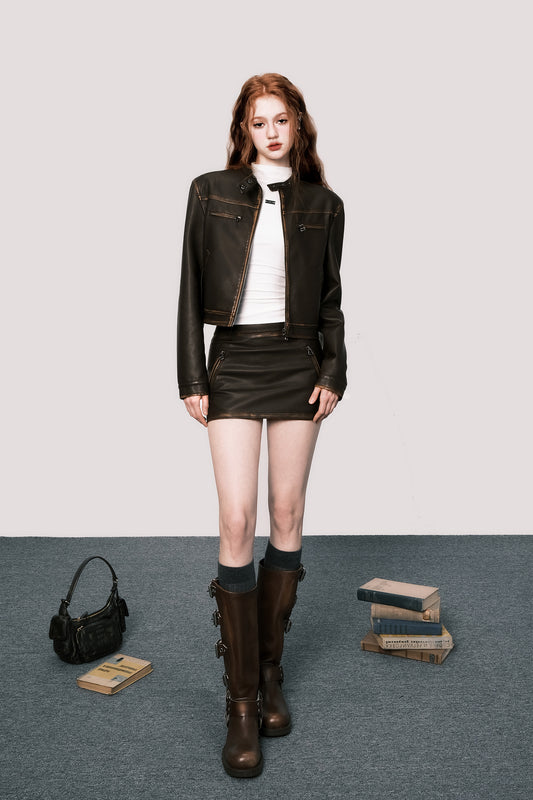Retro Used Short Length Leather Jacket & Short Leather Skirt Setup