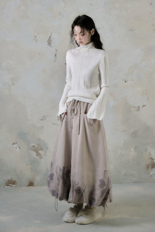 Cotton A-line high-waisted flower bud skirt