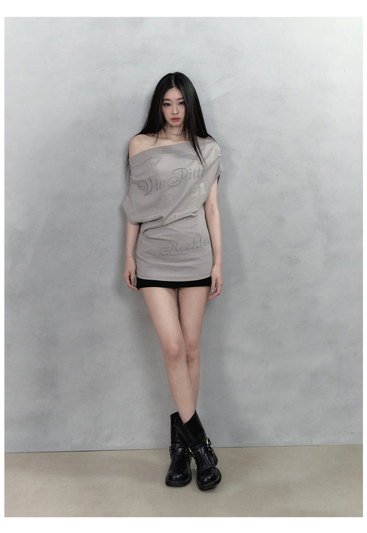 Sold outOne Shoulder Letter Print T-Shirt