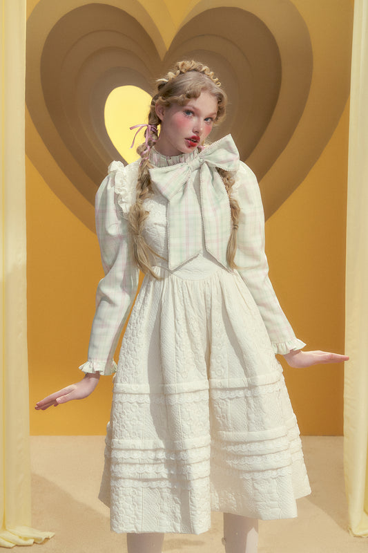 White Lace Embroidery Back Hollow Love Quilted Vest Dress