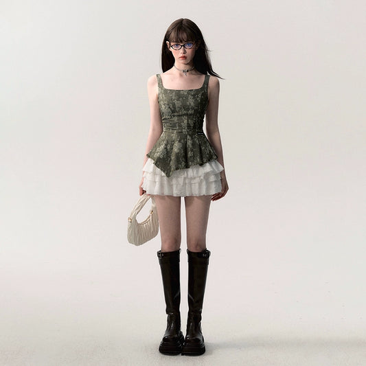 French Girly Floral Layered Sleeveless Dress