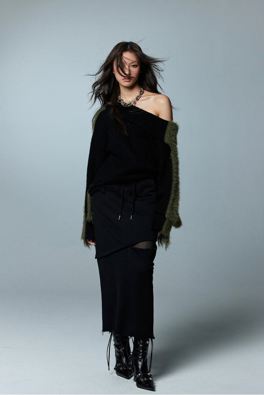 Loose Fit Contrast One Shoulder Knit