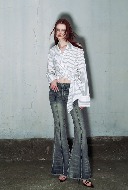 Irregular Design Stripe Long Sleeve Shirt