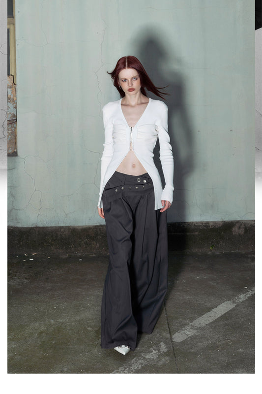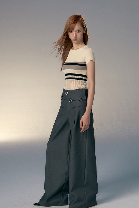 Irregular Waist Wide Straight Slacks Pants
