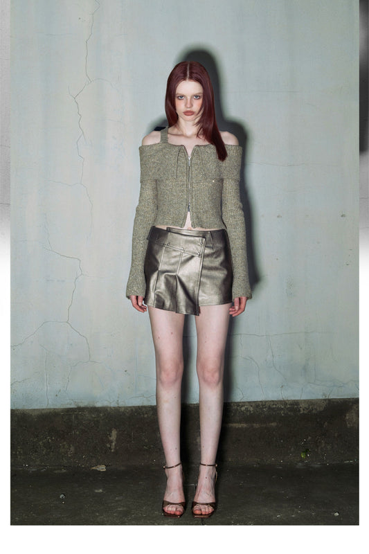 Retro Slim Fit Zipper Off Shoulder Knit