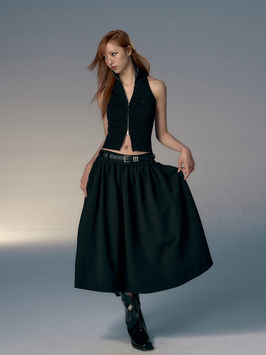 Retro Back Belt Zipper Sleeveless Knit