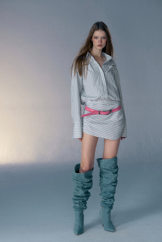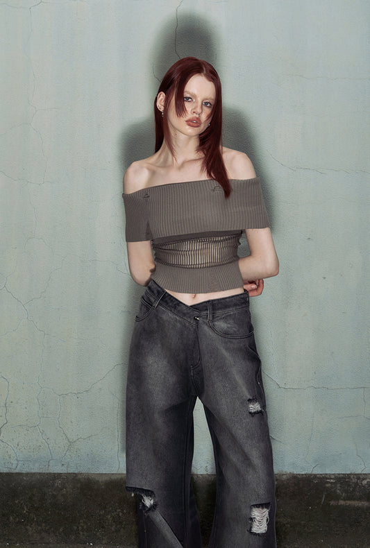 Sold outBack Belt Off-Shoulder Damaged Knit