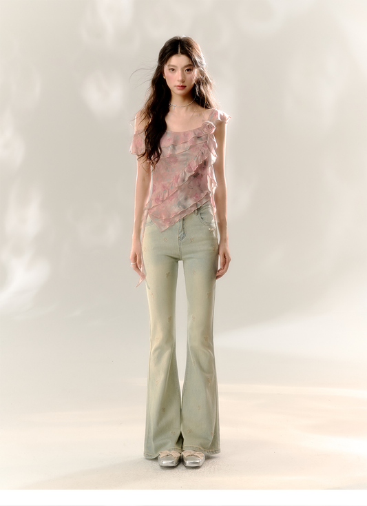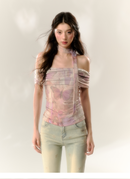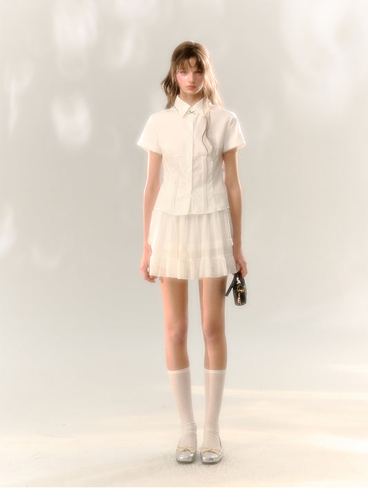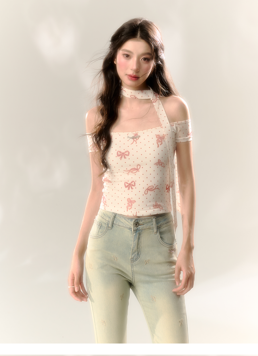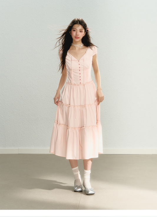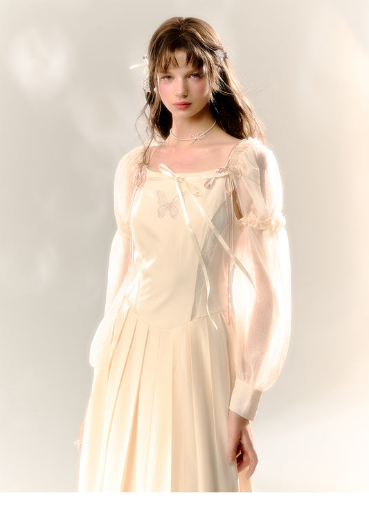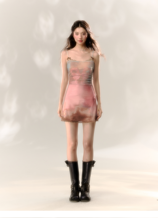 Slim Gradient Suspender Skirt Long Sleeve Set