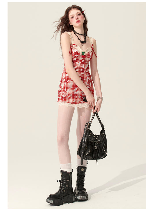 Waistless Rose Velvet Mesh Skirt Dress