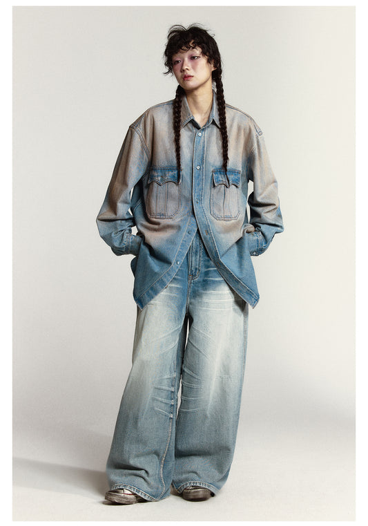 Washed Retro Soft Loose Wide Leg Denim Pants