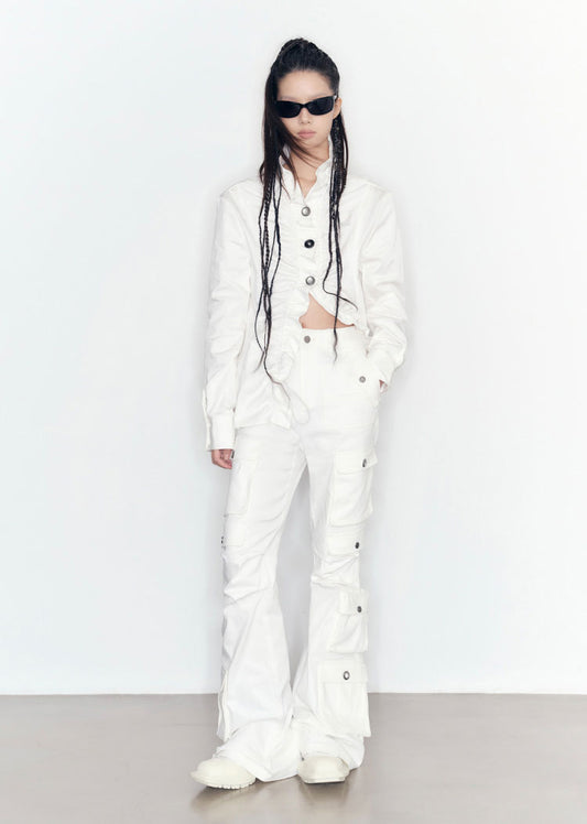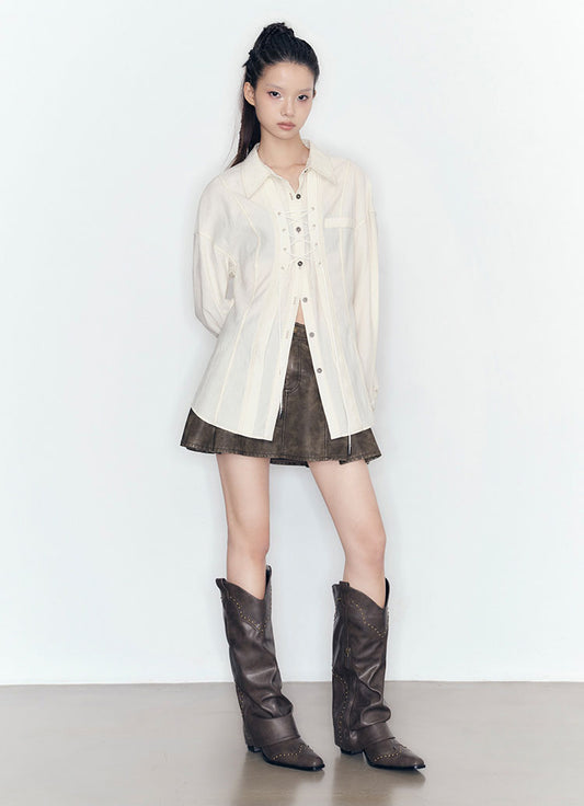 Relaxed Pleated Wrinkle Loose Waist Shirt