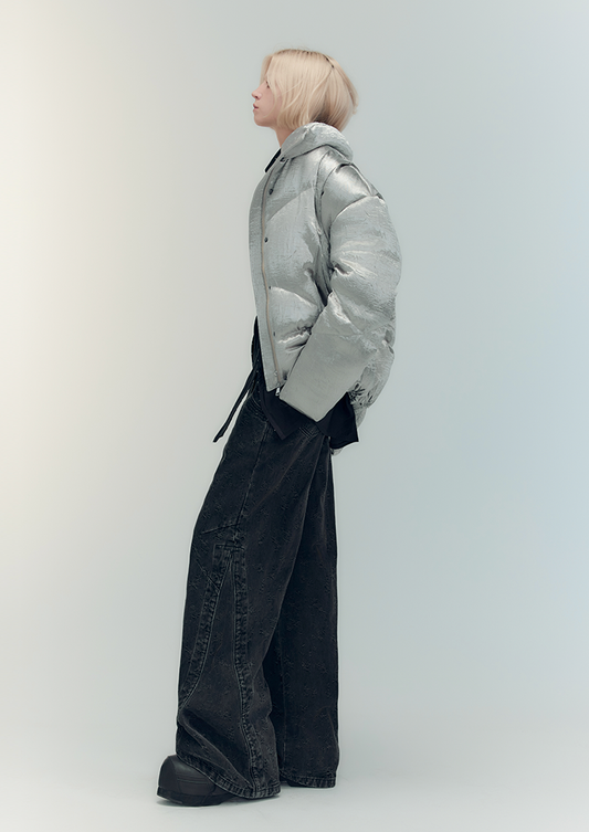 Nylon Vertical Stripe Crepe Short Down Jacket