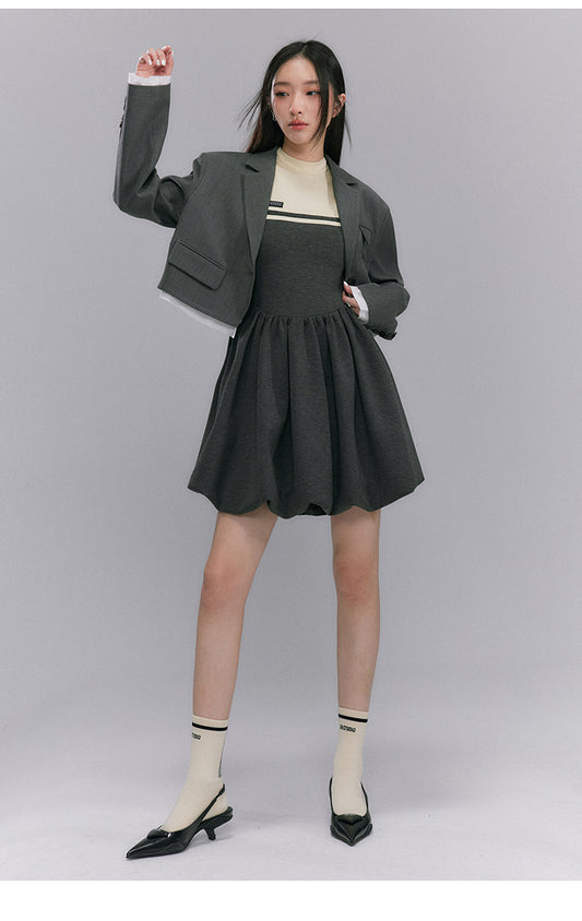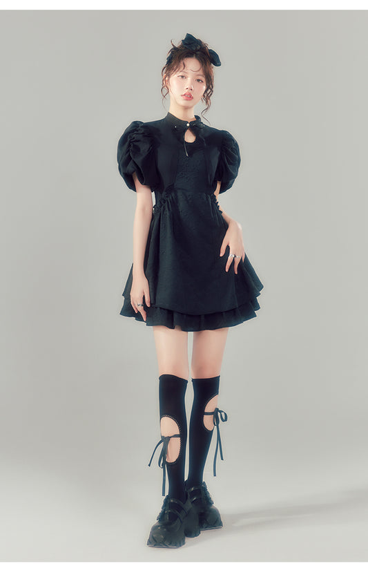 Puff Sleeve Chinese Dress Style Short Length One-piece