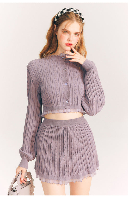 Tulip cable knit cardigan & skirt